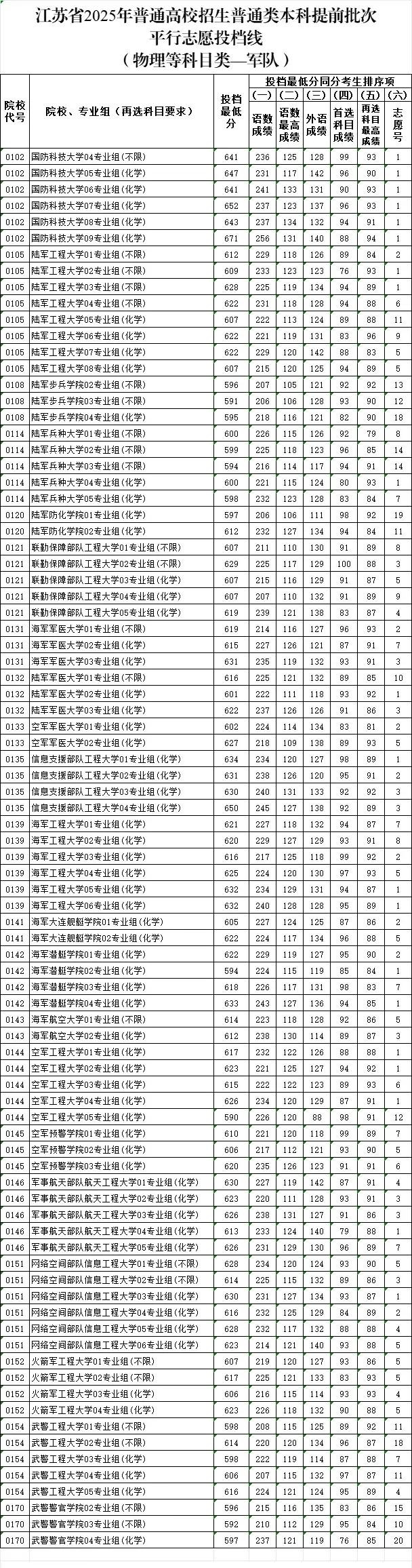 录取分数线最高的,自然还是国防科技大学。国防科技大学09专业组录取分数线高达671分,07专业组录取分数线652分,05专业组647分。这是军校在江苏录取的最高分数线。